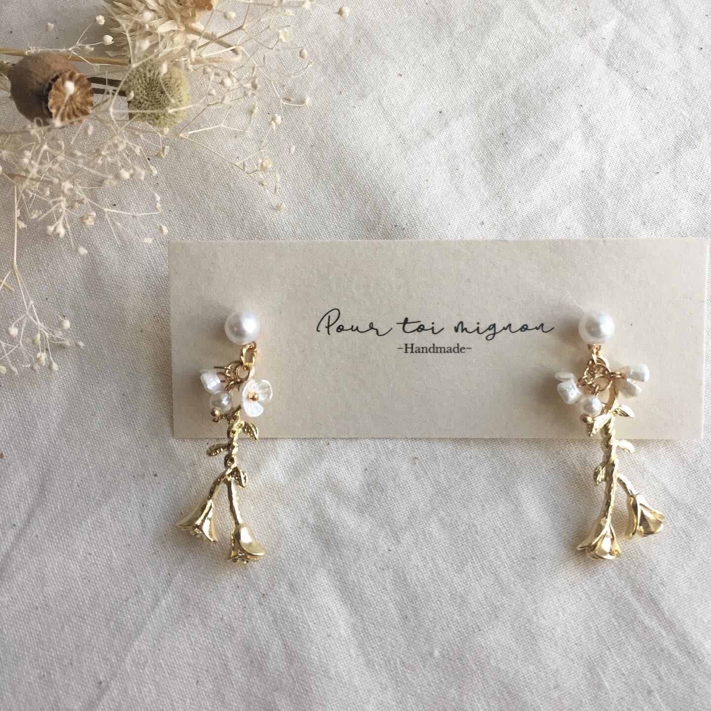 ゆらゆら揺れるバラモチーフが可愛いイヤリングです。