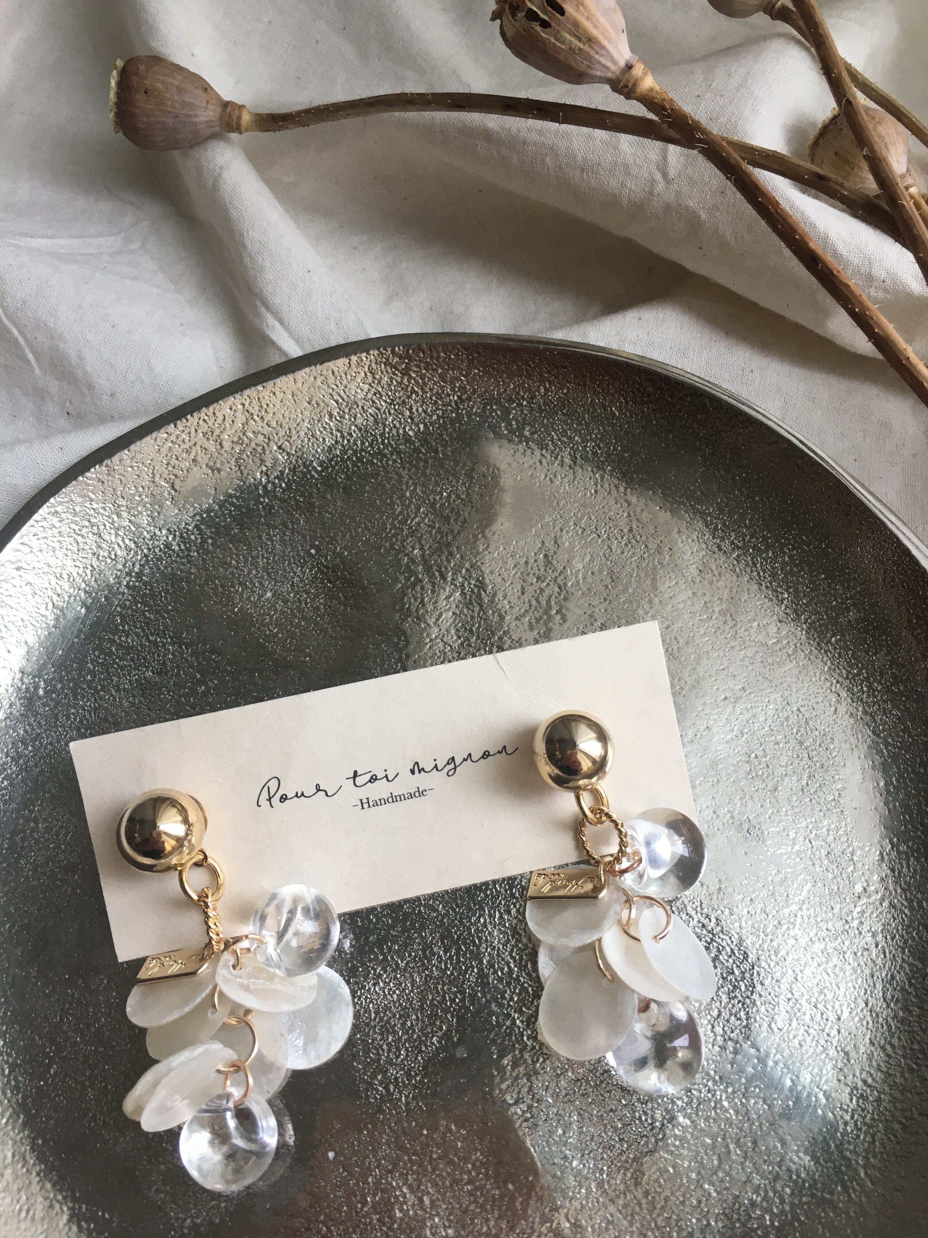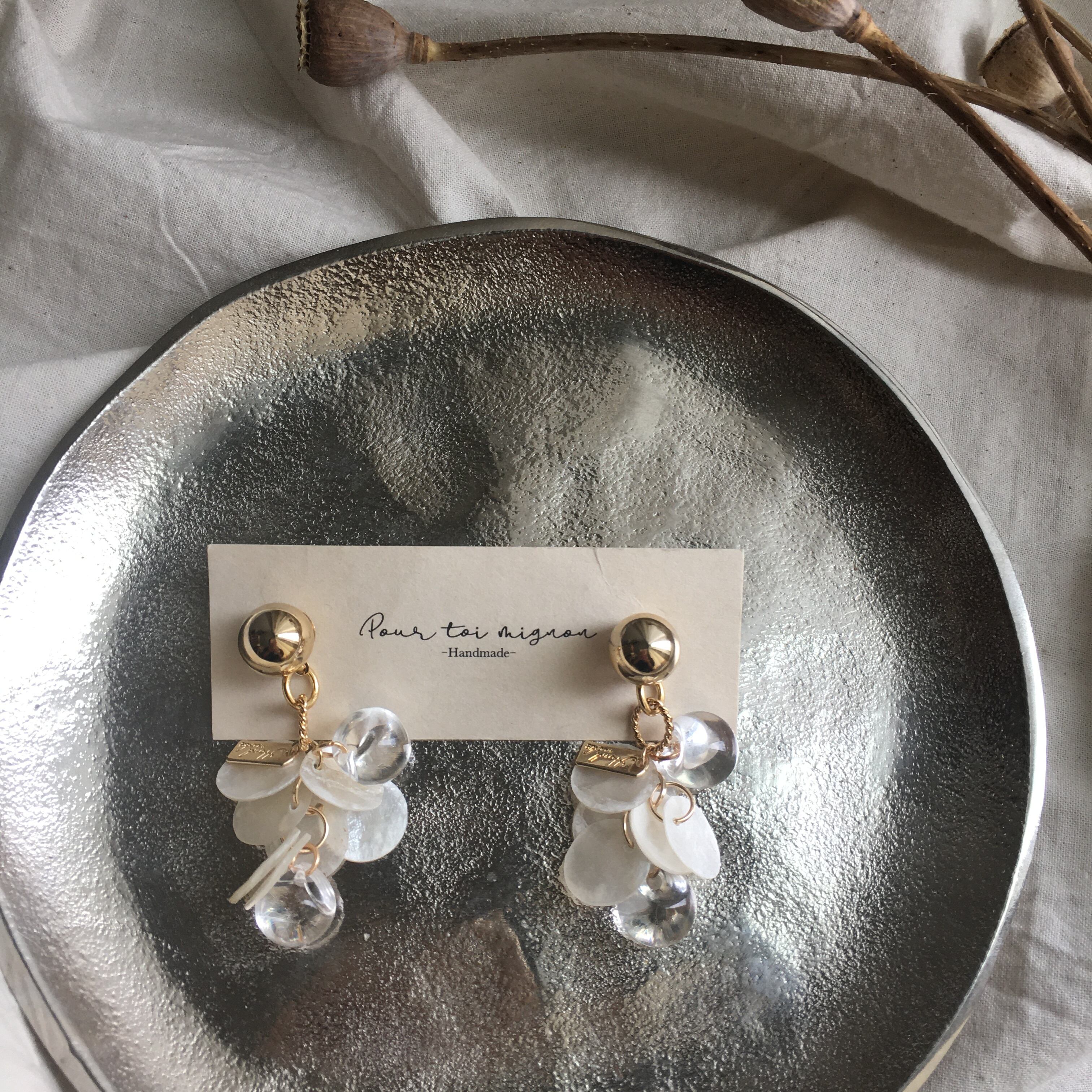 天然のシェルパーツを使用したピアスです。