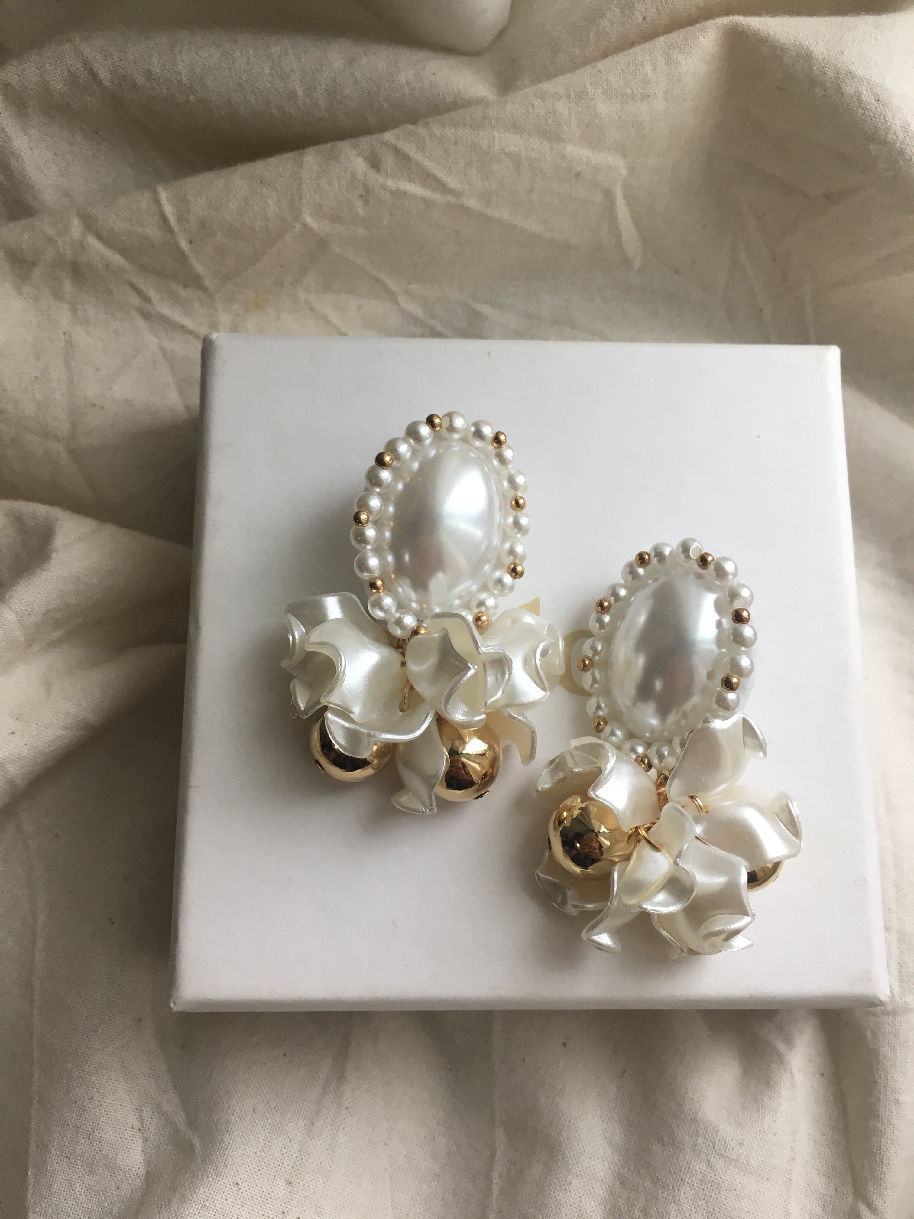 花びらパーツをたっぷり使ったピアス♡